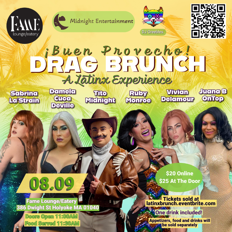 Our Buen Provecho Latinx Drag Brunch at Fame Lounge is back on Saturday August 9th! We keep selling out, so please make sure to get your tickets ASAP!