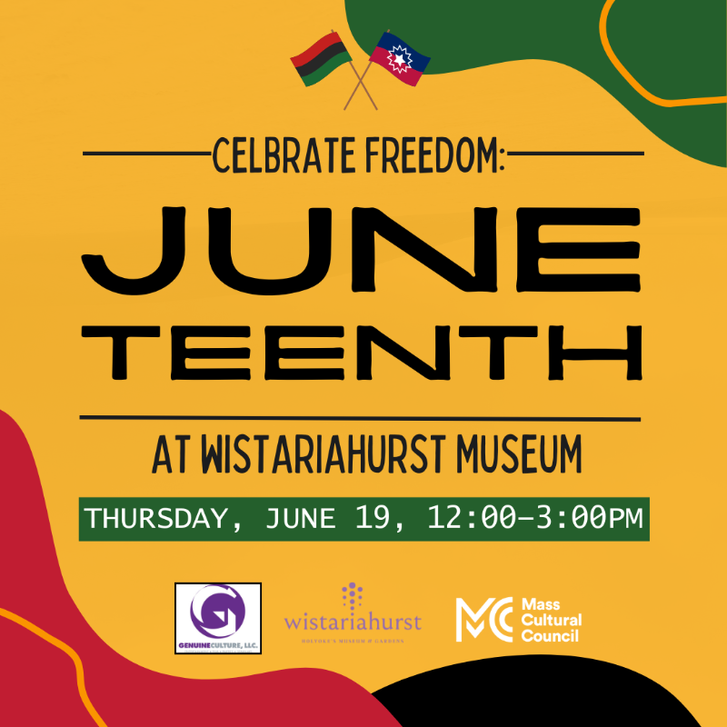 Juneteenth serves as a poignant reminder of the remarkable resilience of Black lives, symbolizing the challenges and victories of formerly enslaved individuals striving for unity, education, and political engagement during the Reconstruction period. So mark your calendars and bring your friends and family to Wistariahurst Museum on June 19th, 2025 12:00-3:00pm! It’s going to be a day filled with joy, laughter and a whole lot of celebration. Let’s make memories, honor history, and uplift the voices of the Black community in Holyoke. Best of all, admission to this celebration is completely free and open to the public! We can’t wait to see you there!
